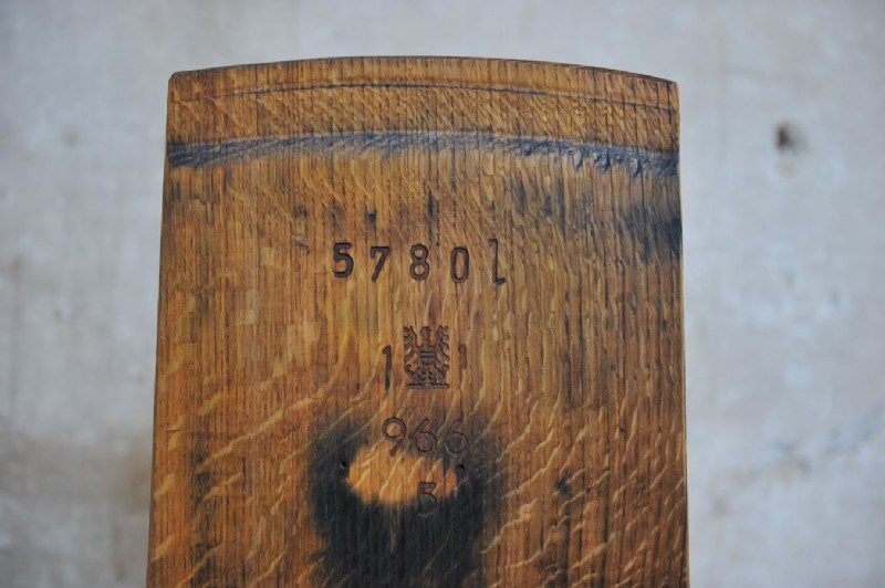 Eine einzigartige Garderobe, welche aus einer Fassdaube gefertigt wurde. Der rötliche Schimmer des Eichen-Holzes erinnert an den feinen Rotwein der darin über Jahrzehnte gelagert wurde und die eintreffenden Gäste mit viel Wärme empfängt. Die Bodenplatte der Garderobe ist aus altem Eisen. Sämtliche Oberflächen sind geölt.
