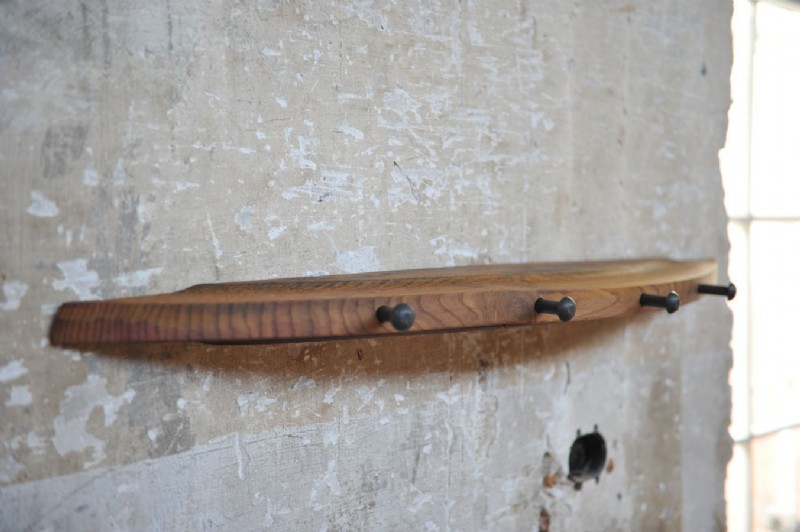 Wandgarderobe Riesling, gefertigt aus einem ca. 50-Jahre alten Eichen-Weißweinfasses. Sämtliche Oberflächen sind geölt.